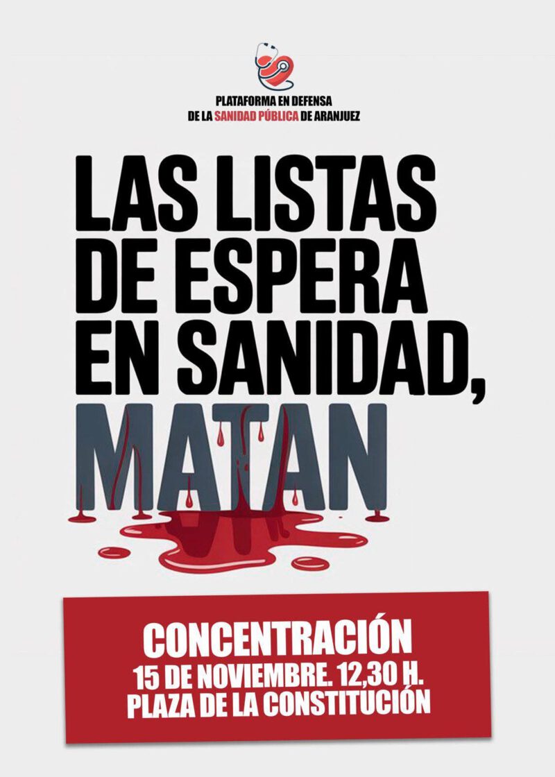 La Plataforma en Defensa de la Sanidad Pública de Aranjuez, denuncia que los retrasos en la atención sanitaria ponen en riesgo la vida y la salud de miles de personas.