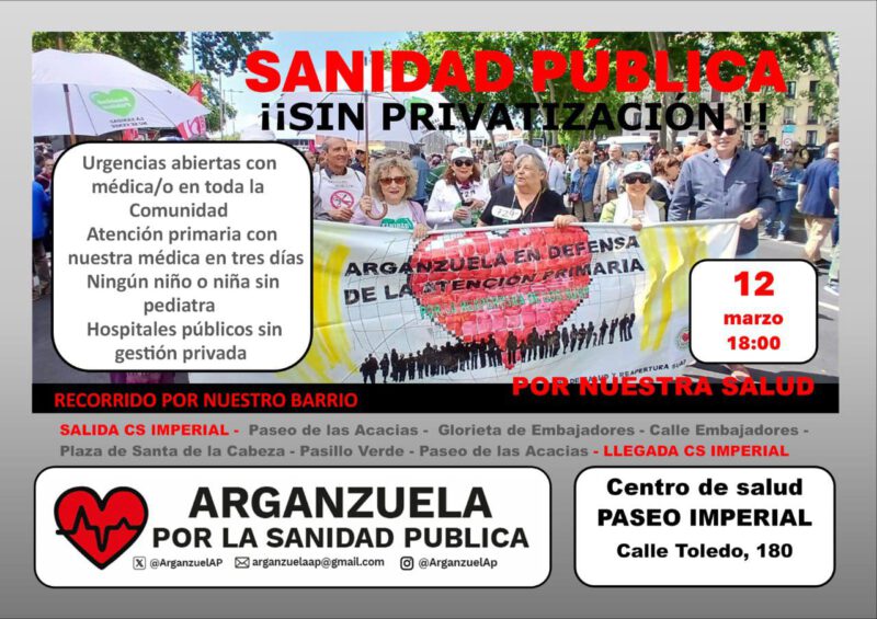La sanidad pública se defiende entre todas. Te esperamos en las calles de Arganzuela.