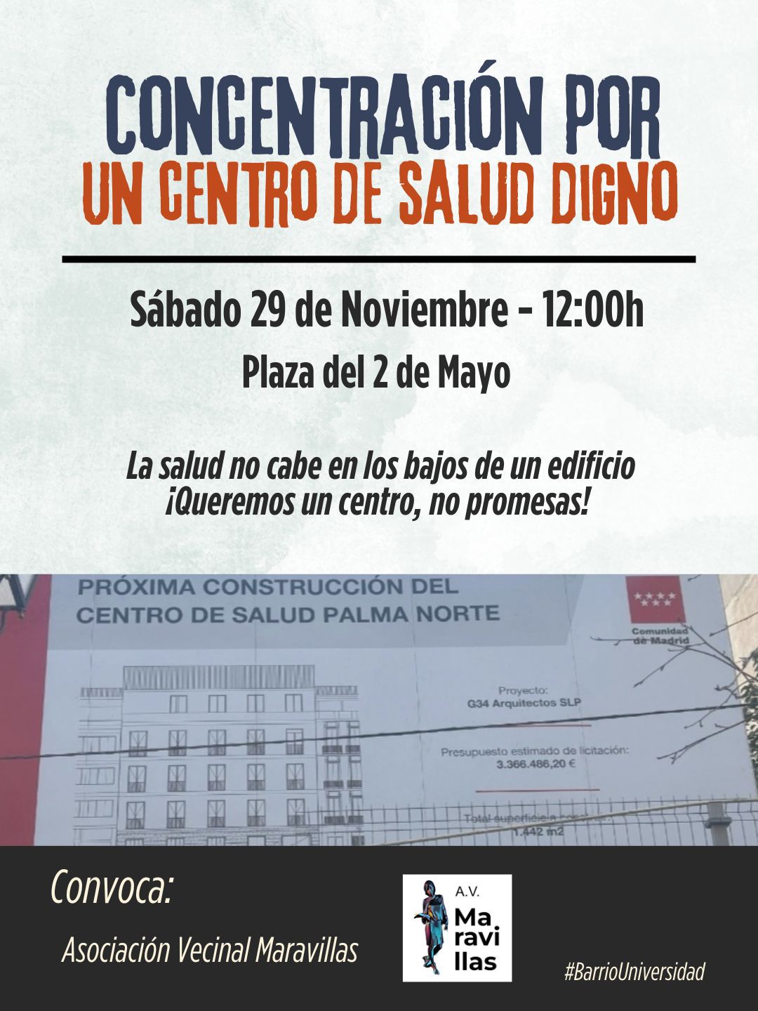 📢 Exigimos la construcción del nuevo C.S. prometido desde hace años. El nuevo espacio sanitario debe edificarse en un solar de la calle Antonio Grilo, cedido por el Ayuntamiento de Madrid en 2019.