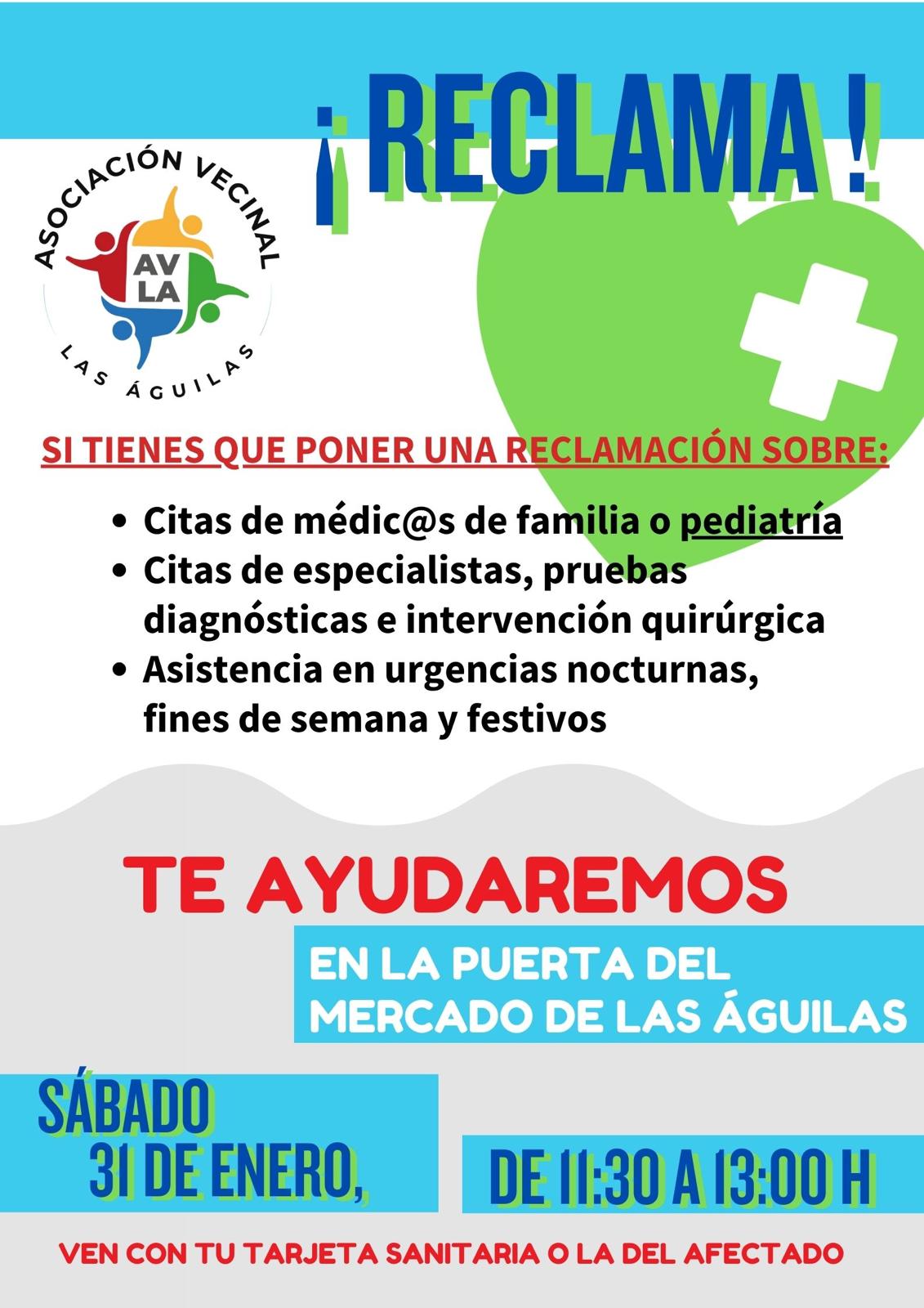 La Asociación Vecinal Las Águilas instala una mesa informativa para ayudar a la ciudadanía a poner reclamaciones por: