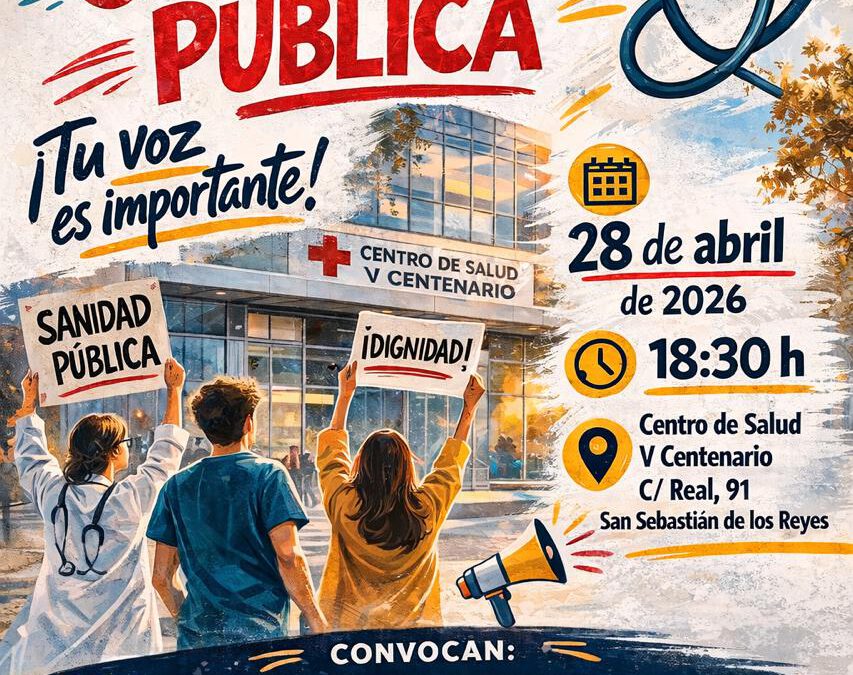 Los días 13, 20 y 27, como llevamos haciendo desde hace 5 años, seguimos alzando la voz frente a la deriva que sufre nuestra sanidad: la derivación de recursos de lo público a lo privado, la falta de plantillas completas de médicos y pediatras, y el deterioro de la atención primaria, puerta de entrada al sistema y pilar de la salud comunitaria.