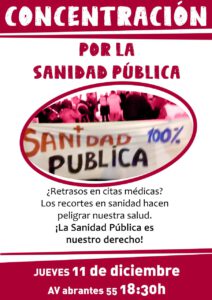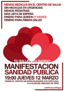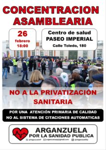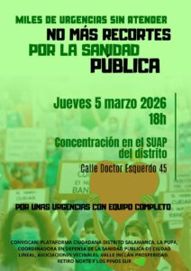 En esta sección transmitiremos las convocatorias de las asambleas de barrios y pueblos que luchan por una sanidad pública de calidad y de plataformas y organizaciones amigas.