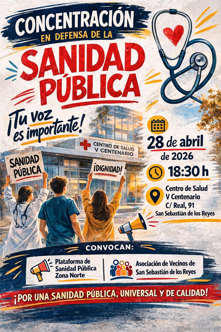 Este 28 de abril nos concentramos para defender una sanidad pública, universal y de calidad, sin derivaciones de dinero público a la sanidad privada.