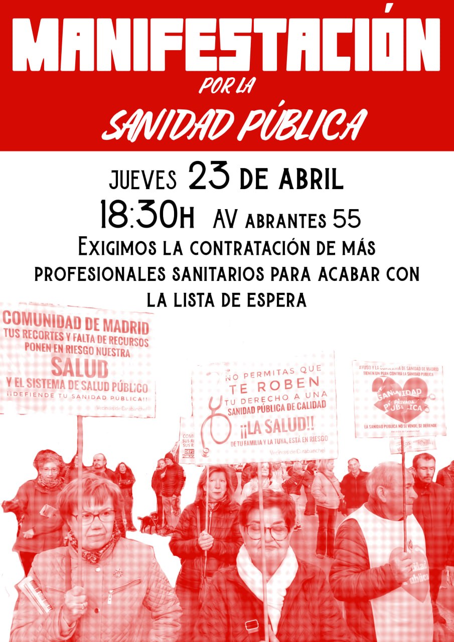 Salimos a la calle para reclamar: – Más contratación de personal médico y sanitario. – Reducción de las listas de espera en atención primaria, especialistas, pruebas e intervenciones. – Una sanidad pública fuerte, accesible y digna para todas y todos.