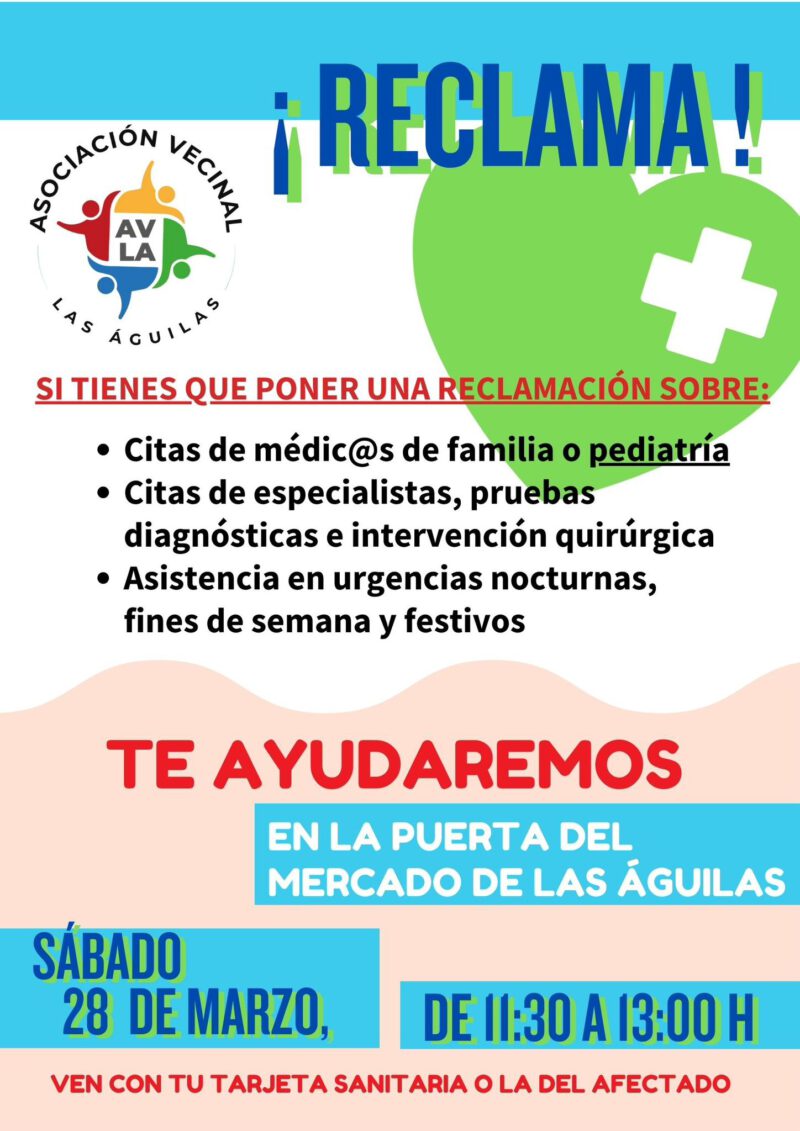 👨👩👧👦 Vecinas y vecinos estaremos apoyando a la ciudadanía para poner reclamaciones por el retraso en las citas médicas, las citas con especialistas y las intervenciones quirúrgicas, así como por cualquier demora injustificada en la atención sanitaria.