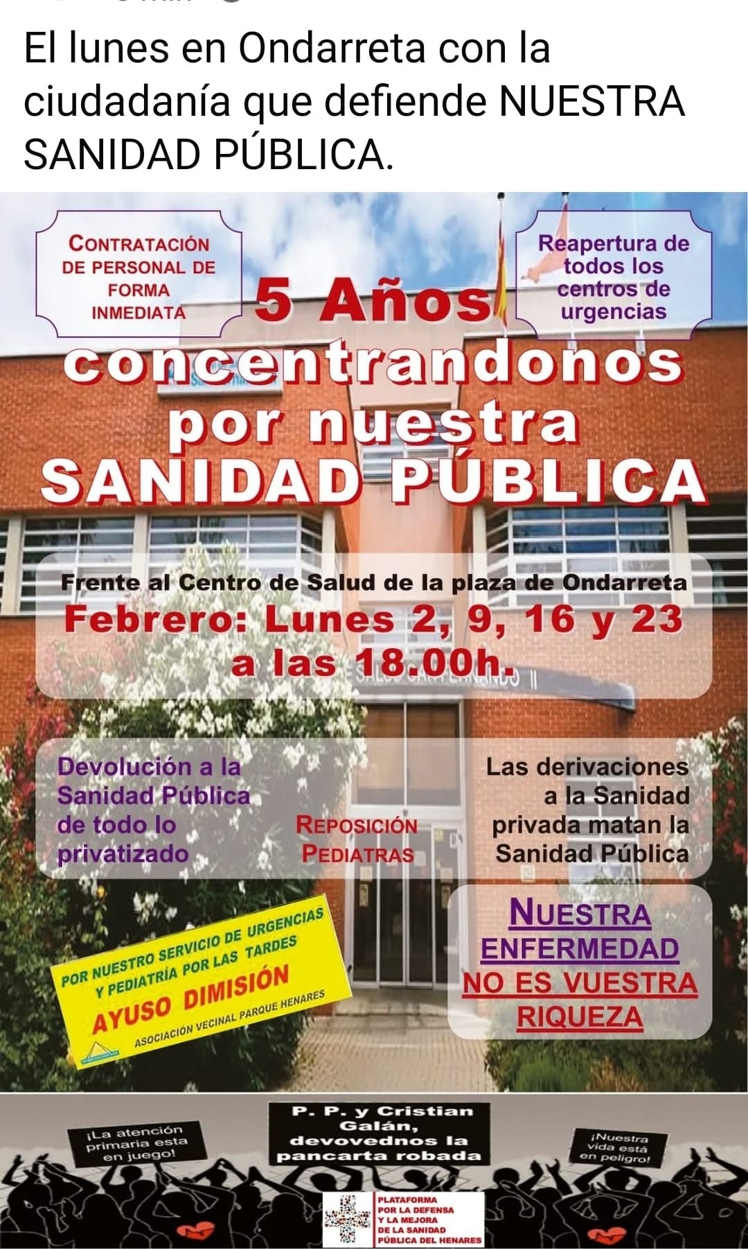 👯♀️ Los vecinos y vecinas de San Fernando de Henares queremos expresar nuestra profunda preocupación y disconformidad ante los recientes recortes en nuestra Sanidad Pública.