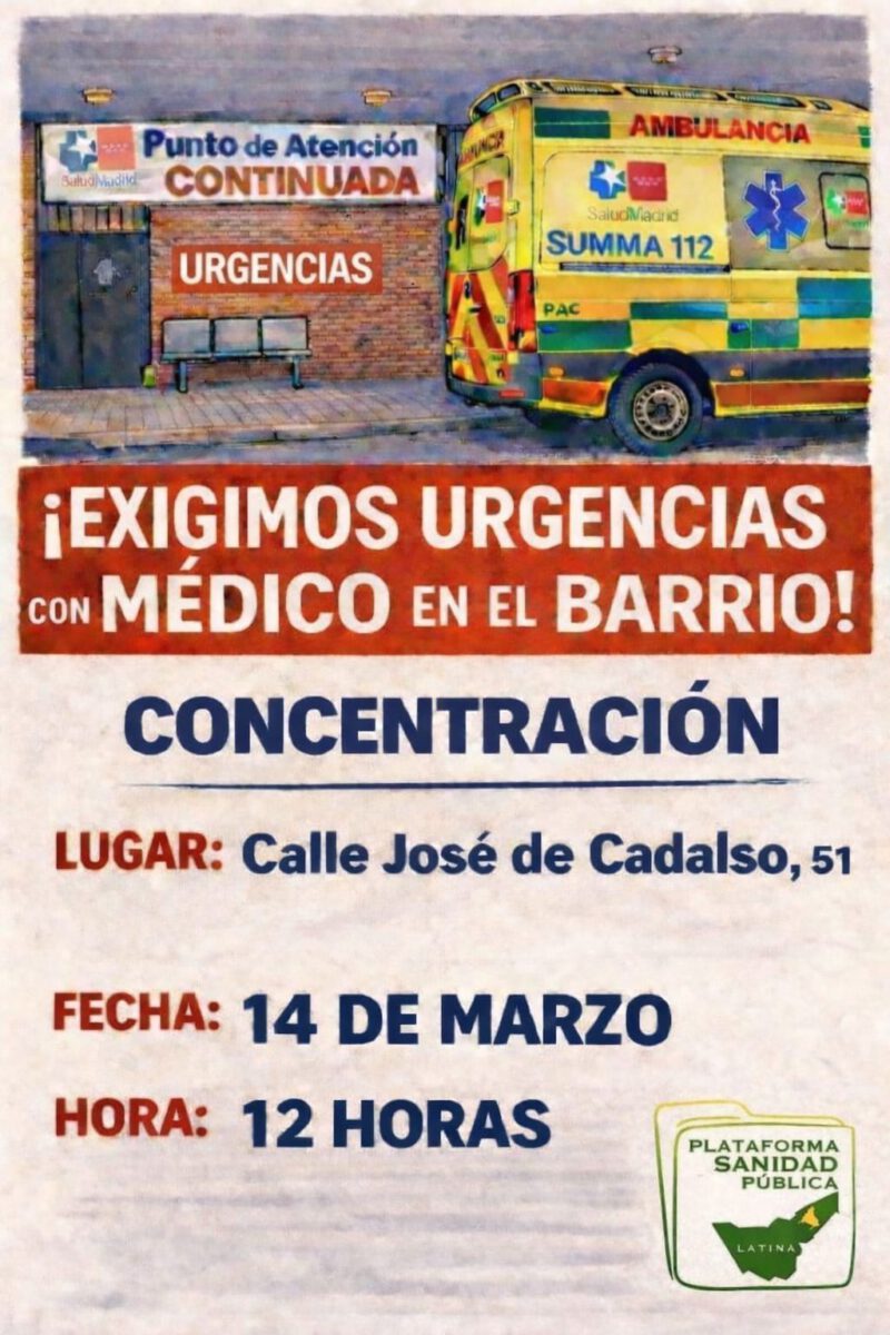 La Comunidad de Madrid decidió cambiar el nombre de los antiguos SUAP para llamarlos ahora PAC. Pero el cambio más importante —tener médico de urgencias en el barrio— sigue sin llegar. A día de hoy, seguimos sin médico, y esto obliga a vecinas y vecinos a desplazarse hasta su hospital de referencia incluso para urgencias que deberían resolverse en el propio barrio.