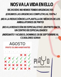 💰 Mientras los y las diputadas de la Comunidad de Madrid se suben el sueldo, en Pinto hemos estado 16 días de agosto sin servicio de urgencias.